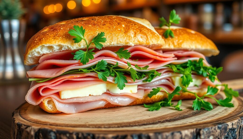 Pour faire ce sandwich, il faut bien choisir ses ingrédients. On utilise de la viande d’épaule, des oignons, de l’ail, et des épices. La marinade, faite avec du Tabasco, de la moutarde, du miel, du paprika, et du gingembre, est cruciale. Elle est appliquée à la viande qui est ensuite cuite lentement.